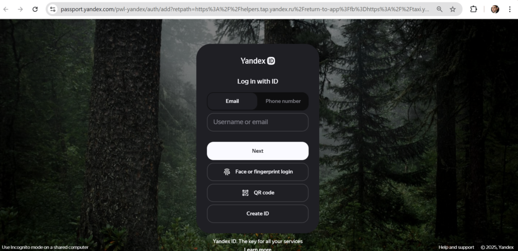 Գաղտնիության ծանուցագիրը օգտատերերին չի առաջարկվում Yandex մուտք գործելու էջում (տես՝ Նկար 1):